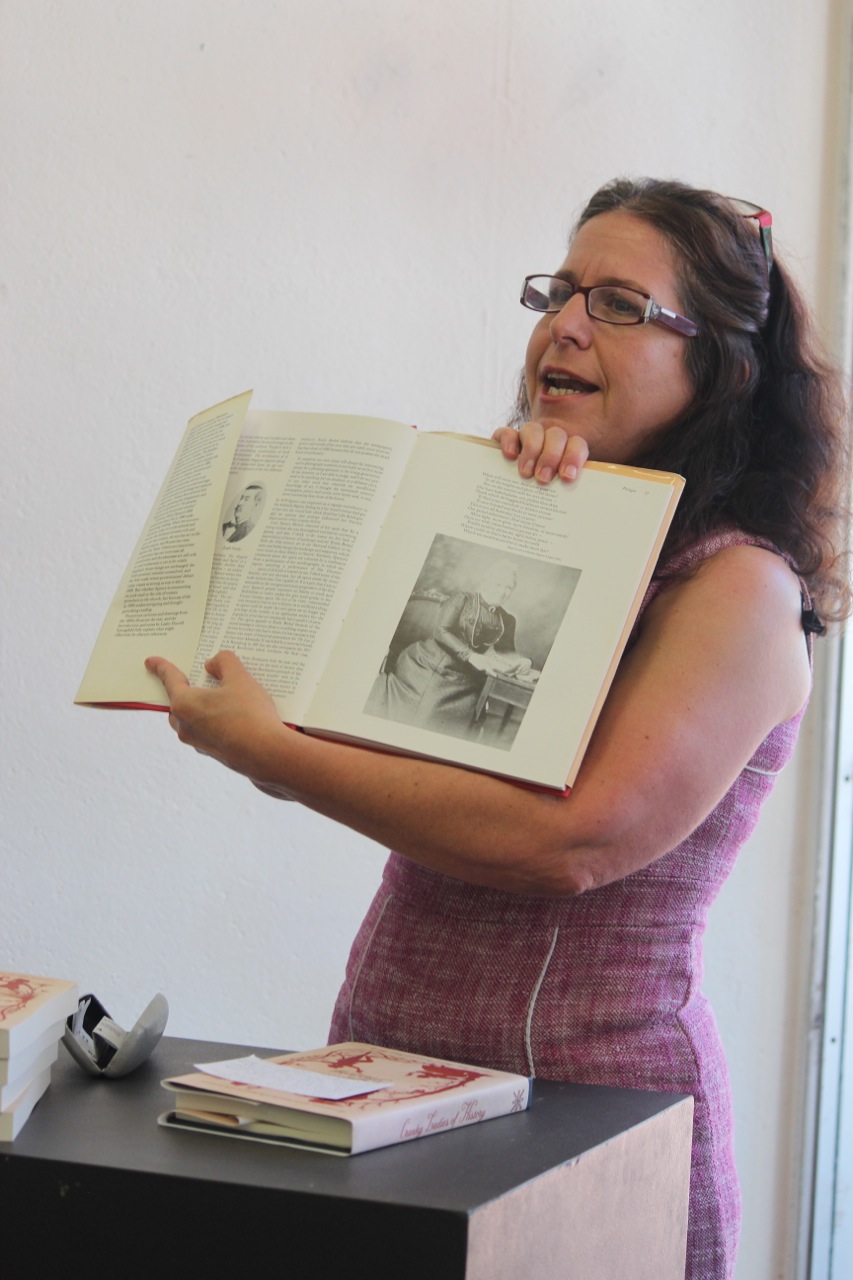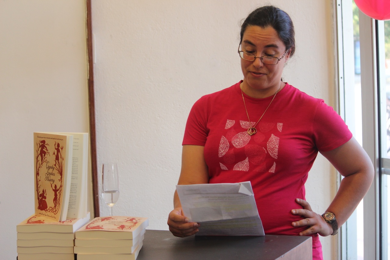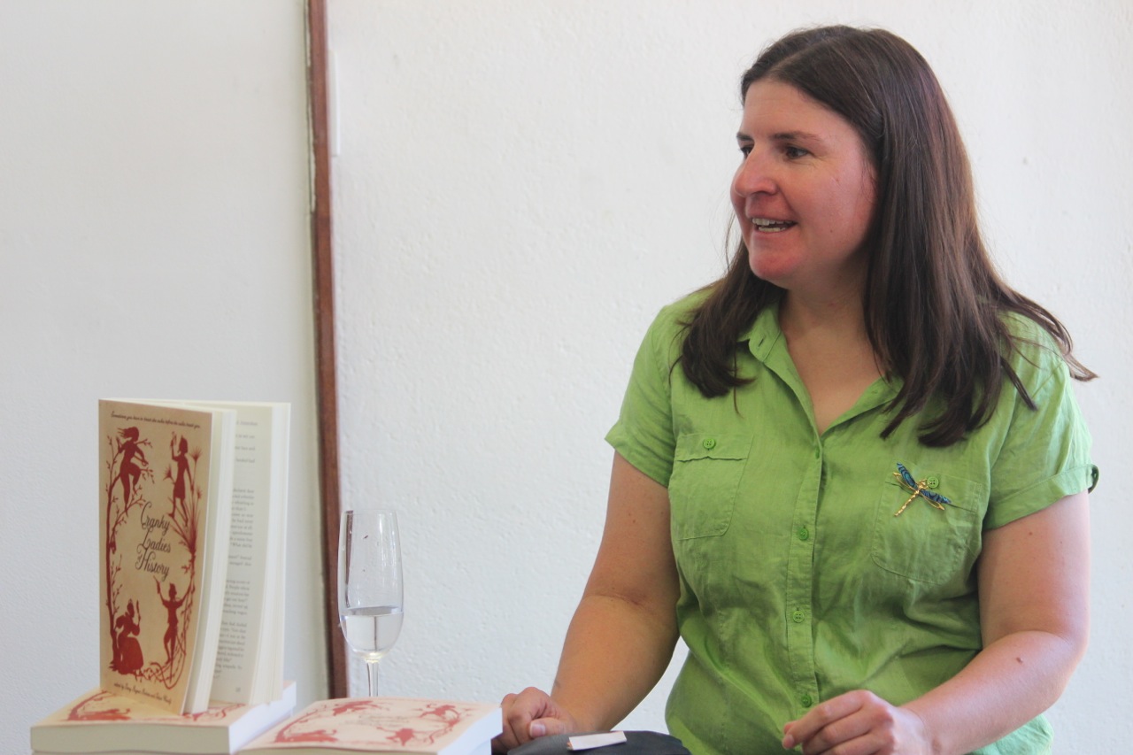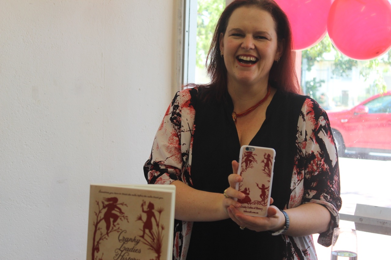 Tansy and I arrived nice and early (with Miss 9 as offsider) to set up at The Front Gallery and Cafe – a big thanks to the venue for a great space and a great price, and friendly and helpful service. Thanks also to my work colleague Alexis who was a huge help throughout the setup and launch, completely unexpectedly but most appreciated. Our special guest Karen Middleton joined us – next time I hope I can actually have a proper conversation with her, but I think others did get to chat more – and the attendees began to trickle in. The room filled up quickly and the poor airconditioner couldn’t quite keep up with the pressure, but the launch proceeded regardless of the warmth. Karen Middleton spoke passionately and thoughtfully about the book and the concept, to the point where I was nearly in tears – it’s so great when people really get what you were aiming to do, and we couldn’t be more grateful for Karen for her time and kindness in officially sending Cranky Ladies of History out into the world.