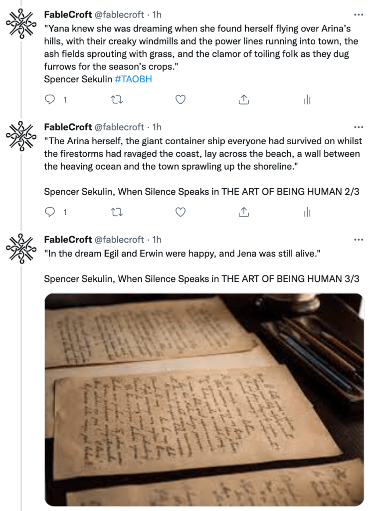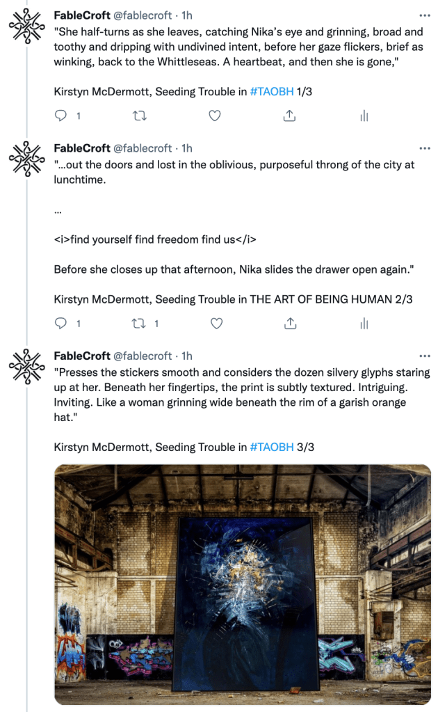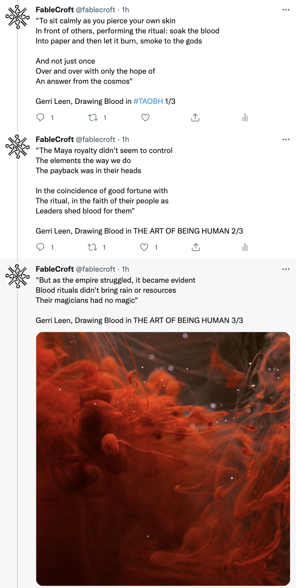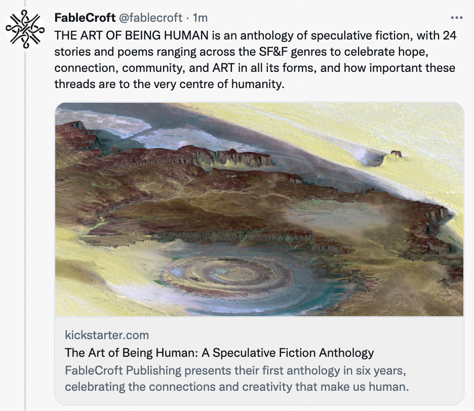 Just FIVE HOURS left of the pre-order campaign, so today we shared a glimpse into every story and poem in The Art of Being Human over on Twitter. You can check them out in the hourly threads there, or through the gallery of screen caps below.
