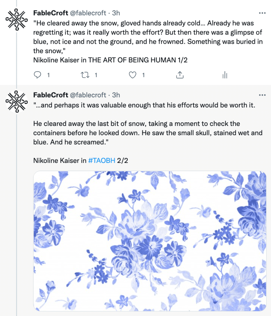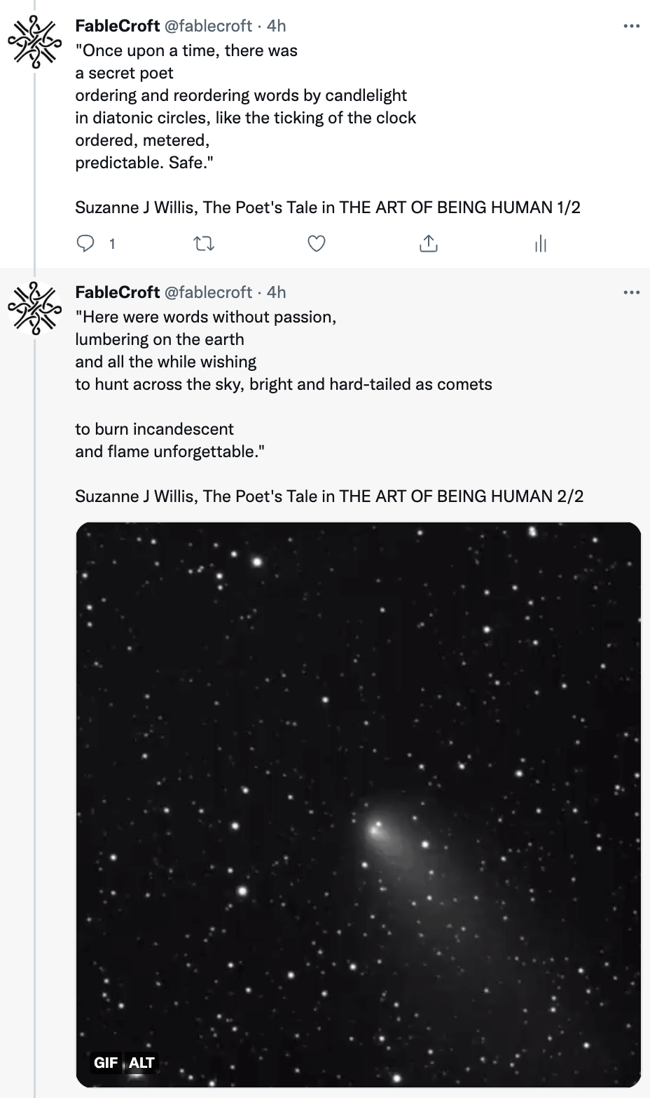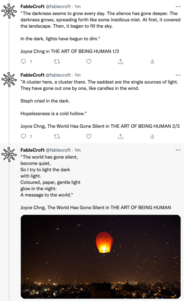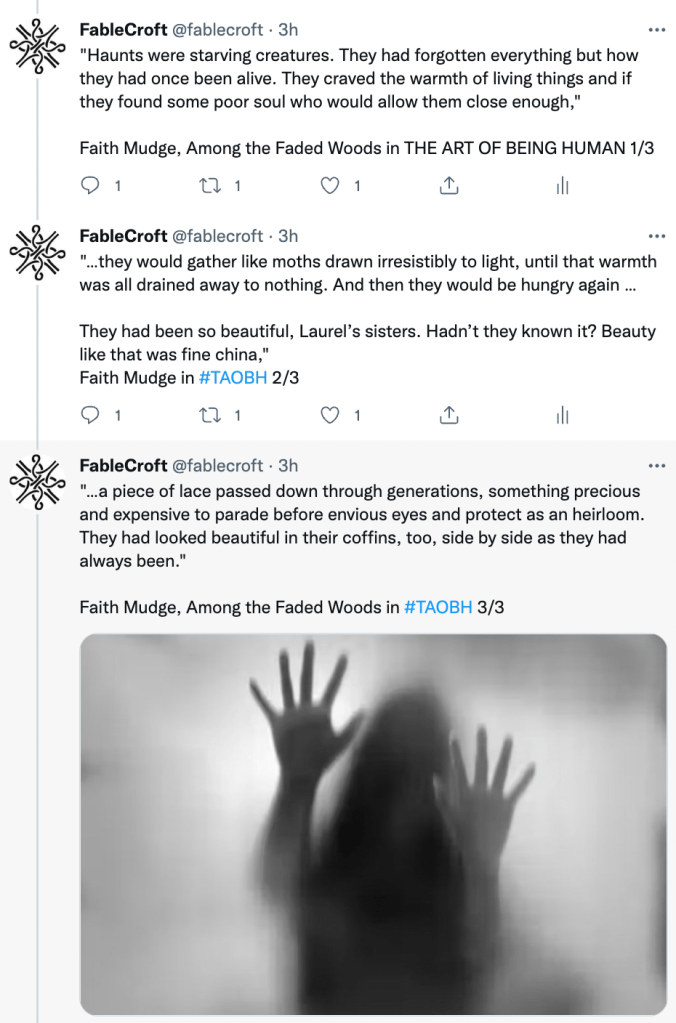 Just FIVE HOURS left of the pre-order campaign, so today we shared a glimpse into every story and poem in The Art of Being Human over on Twitter. You can check them out in the hourly threads there, or through the gallery of screen caps below.