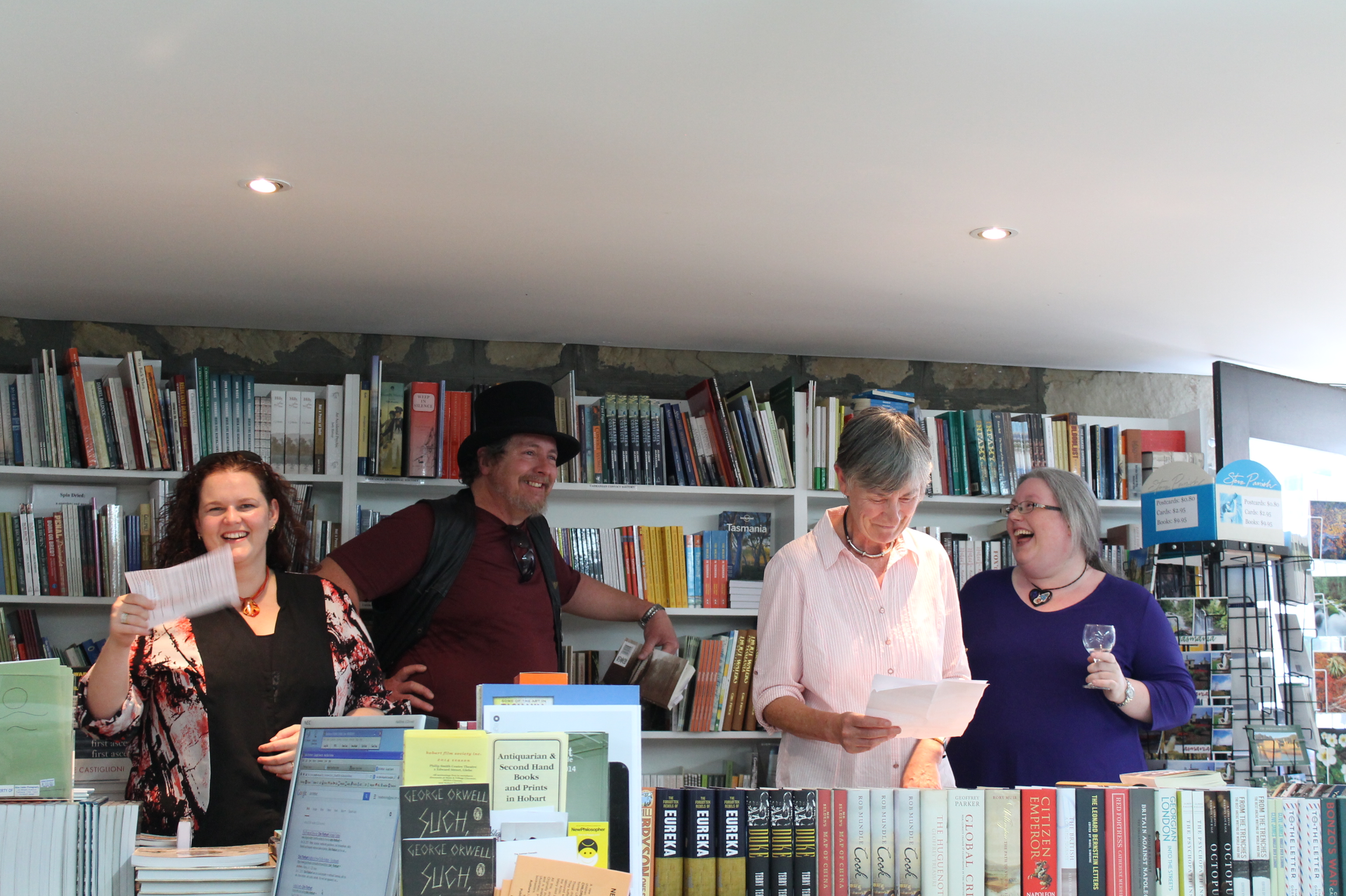 Earlier this year, we had a FableCroft Book Party, hosted by the great folks at The Hobart Bookshop. The wonderful Lian Tanner said lovely things about Ink Black Magic and Path of Night, and Tansy and Dirk both got to read some of their novels too. Was a good turnout, particularly for the Sunday afternoon of the long weekend, and we thoroughly enjoyed ourselves!